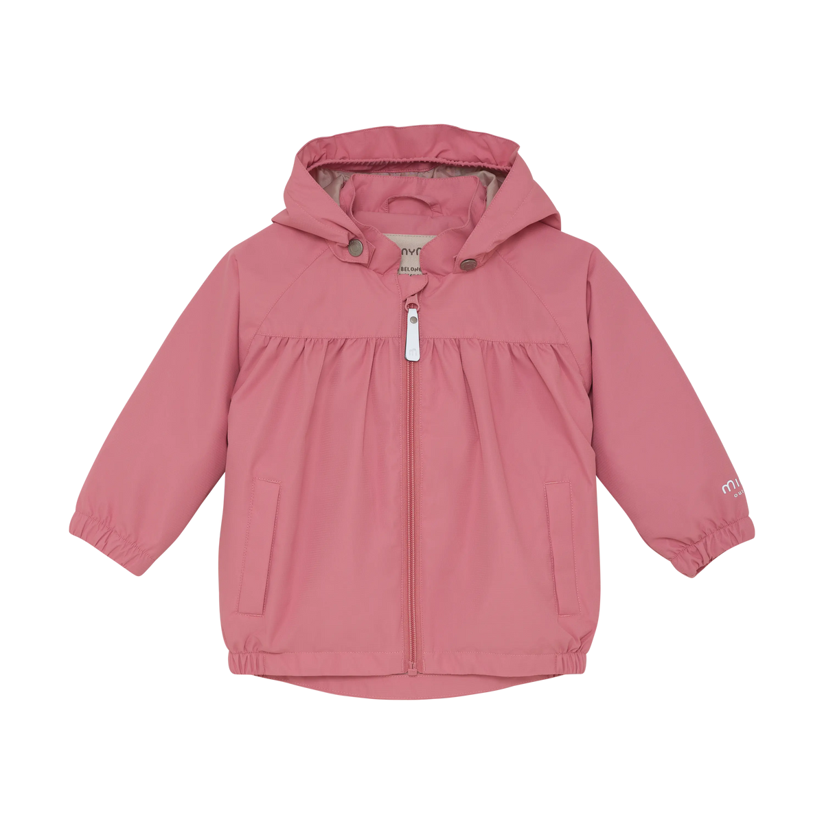 Deze Minymo jas met all-over print is gemaakt voor actieve kinderen die zich niet laten tegenhouden door regen of wind. Of het nu een boswandeling, fietstocht naar school of spelen in de tuin is — deze jas beschermt én ademt mee.