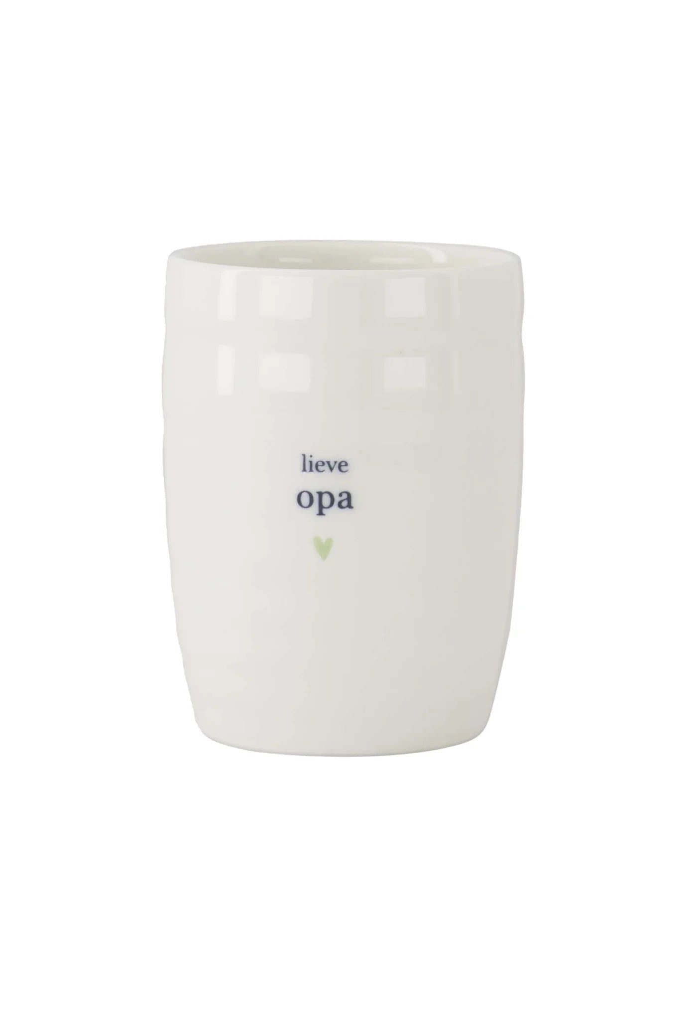 Deze Zusss koffiemok met "lieve opa" tekst brengt een zachte, persoonlijke touch aan elk koffiemoment. Met zijn subtiele lichtgroene hartje en eenvoudige typografie, is deze koffiemok een warm gebaar voor opa’s die genieten van een moment rust. De koffiemok is wit en straalt eenvoud en tijdloze charme uit, ideaal voor dagelijks gebruik of als attent cadeau. Dankzij het gladde keramiek ligt de mok prettig in de hand en behoudt hij de temperatuur van je favoriete koffie. Zo wordt elk moment aan tafel extra bijzonder met deze Zusss koffiemok.