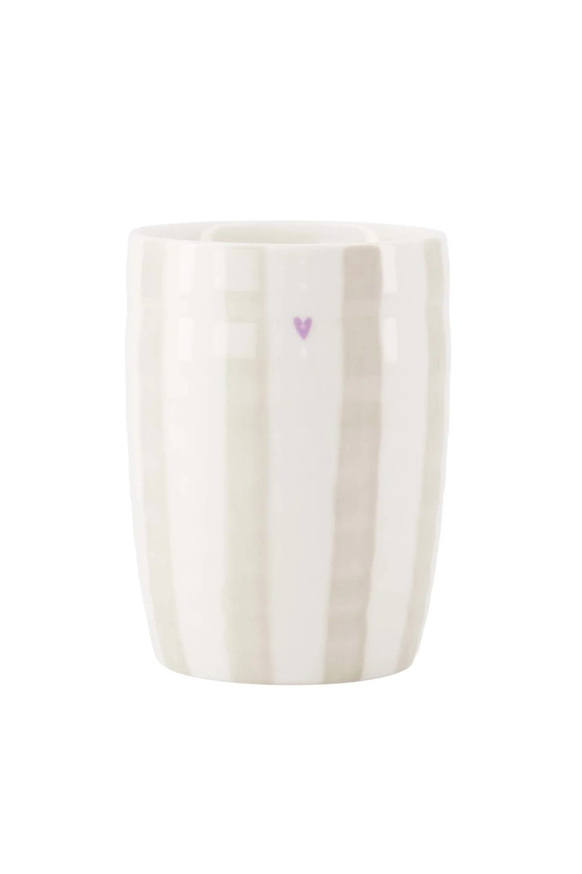 De Zusss koffiemok is perfect voor iedereen die van een stijlvolle koffiemok houdt. Deze koffiemok met strepen en een hartje combineert een eigentijds design met functionaliteit. De keramische mok straalt in een prachtige witte kleur met zandkleurige strepen en een subtiel lila hartje. Met een compact formaat van 8x7 cm ligt hij comfortabel in de hand en past hij perfect bij de rest van je Zusss servies. Ontdek meer bijpassende items in onze keukentextielcollectie en geniet van je favoriete koffie met deze bijzondere Zusss koffiemok.