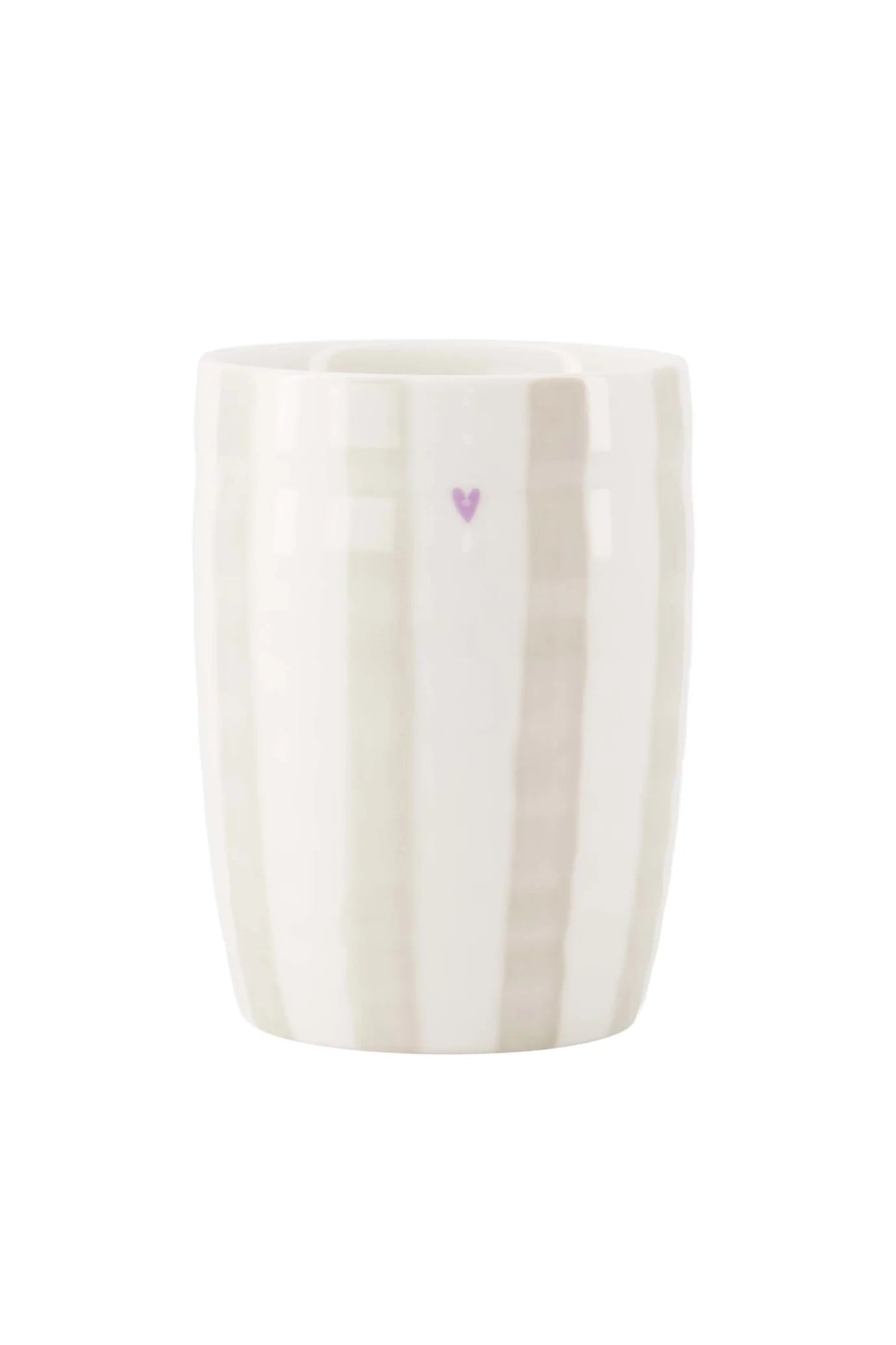 Eenheid prijs / PerDe Zusss koffiemok is perfect voor iedereen die van een stijlvolle koffiemok houdt. Deze koffiemok met strepen en een hartje combineert een eigentijds design met functionaliteit. De keramische mok straalt in een prachtige witte kleur met zandkleurige strepen en een subtiel lila hartje. Met een compact formaat van 8x7 cm ligt hij comfortabel in de hand en past hij perfect bij de rest van je Zusss servies. Ontdek meer bijpassende items in onze keukentextielcollectie en geniet van je favoriete koffie met deze bijzondere Zusss koffiemok.
