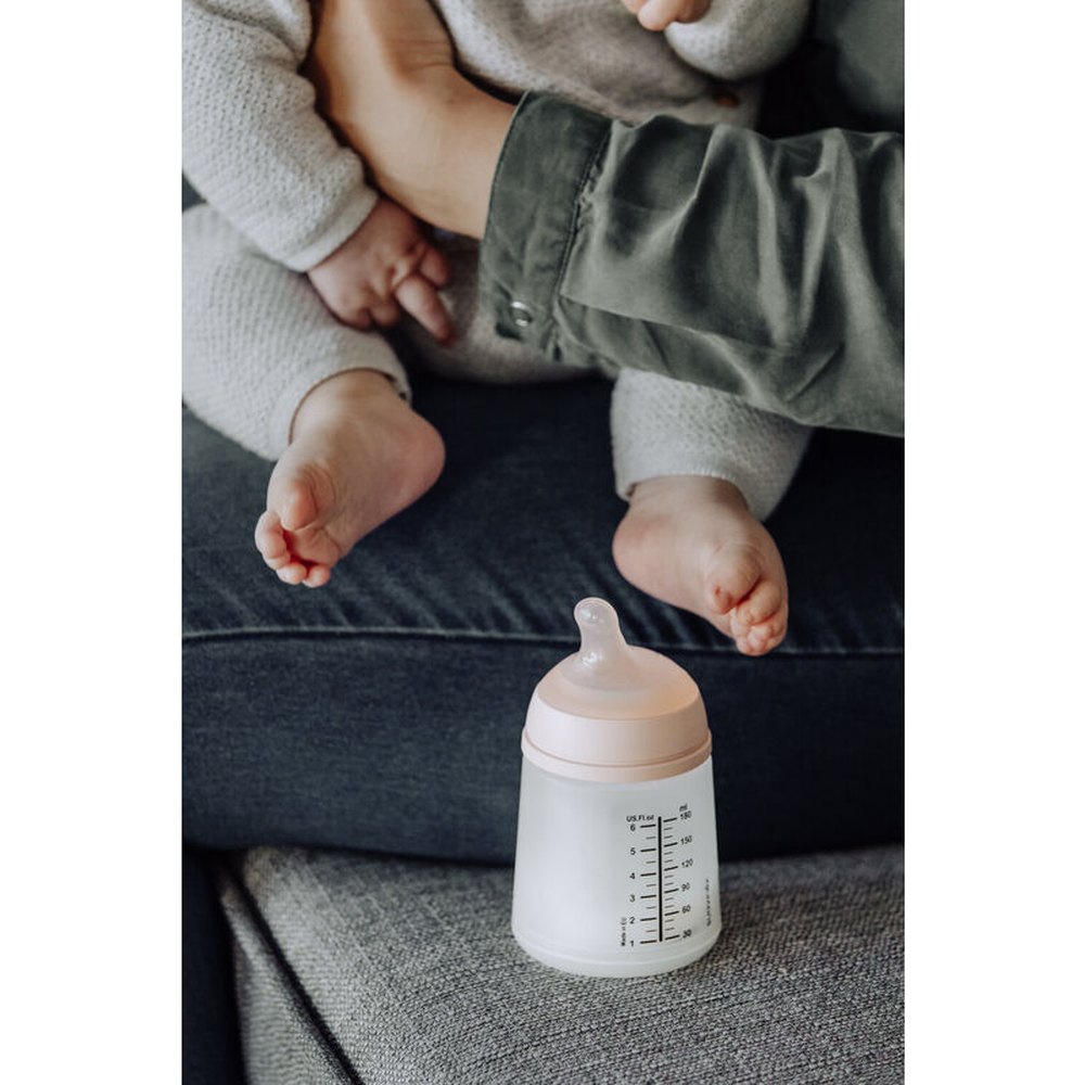 De ZERO.ZERO zuigfles bootst de borstklieren fysiologisch na tijdens het zuigen. Hij is ideaal voor gemengde borstvoeding, dankzij de ultrazachte siliconenspeen die de vorm, lengte en het gevoel van de tepel van de moeder nabootst. Deze antikoliekfles heeft een gepatenteerd anti-koliek zakje dat samentrekt als de baby zuigt, waardoor er geen luchtbellen ontstaan en er geen lucht wordt ingeslikt.