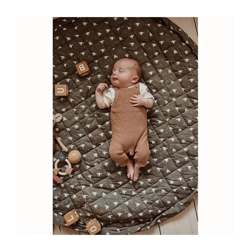 Un tapis de jeu pour bébé unique et rembourré qui sert également de sac de rangement et de sac à langer. 120 cm de diamètre et fabriqué en coton biologique GOTS pour offrir un maximum de plaisir et de confort au bébé. Ce tapis de jeu et sac à langer est si pratique et fonctionnel pour un usage quotidien.