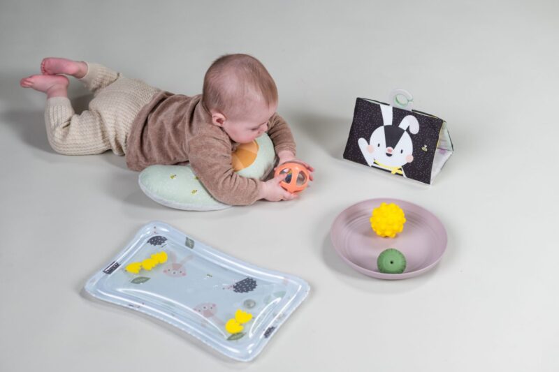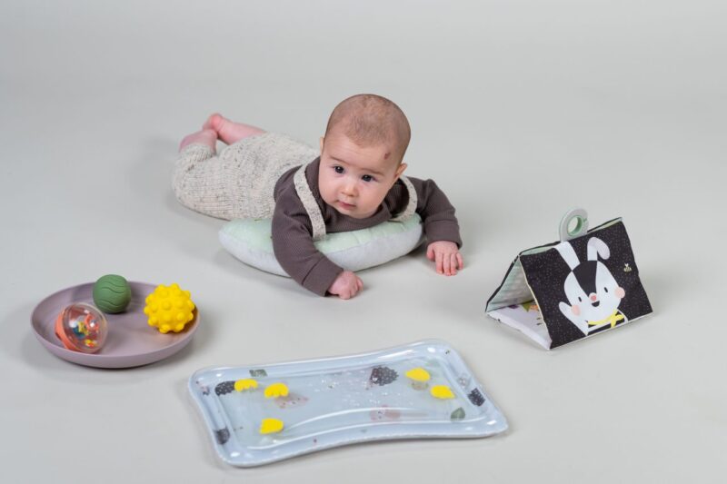 Alles wat je nodig hebt voor de beste tummy-time ervaring] Bevat een klassiek tummy time kussentje, een fascinerende watermat voor extra zintuiglijke activiteit, een dubbelzijdig knisperend tummy time boek en een bord met drie zintuiglijke activiteitsballen in verschillende kleuren en texturen. Deze elementen werken samen om de grove motoriek en cognitieve ontwikkeling van baby te stimuleren. Stem de buikligtijdaf op de ontwikkelingsfase van je baby door elk element apart te gebruiken, wat voor extra plezier en nieuwsgierigheid zorgt] Doordachtontworpen om te voldoen aan baby’s behoeften vanaf de eerste dag. Ook ideaal als geschenkset.